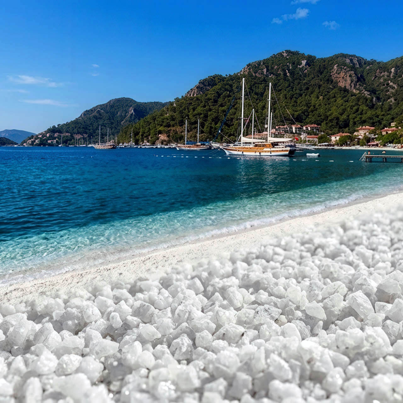 Miamivit 1200-3000 micron calcite, obtained from the purest deposits analyzed in the laboratories of Afyon Kocatepe University by Yükselen Marble, combines aesthetics and functionality. This coarse-grained “crystal sand” exhibits unique performance, especially in areas where it comes into contact with water and on surfaces exposed to sunlight.