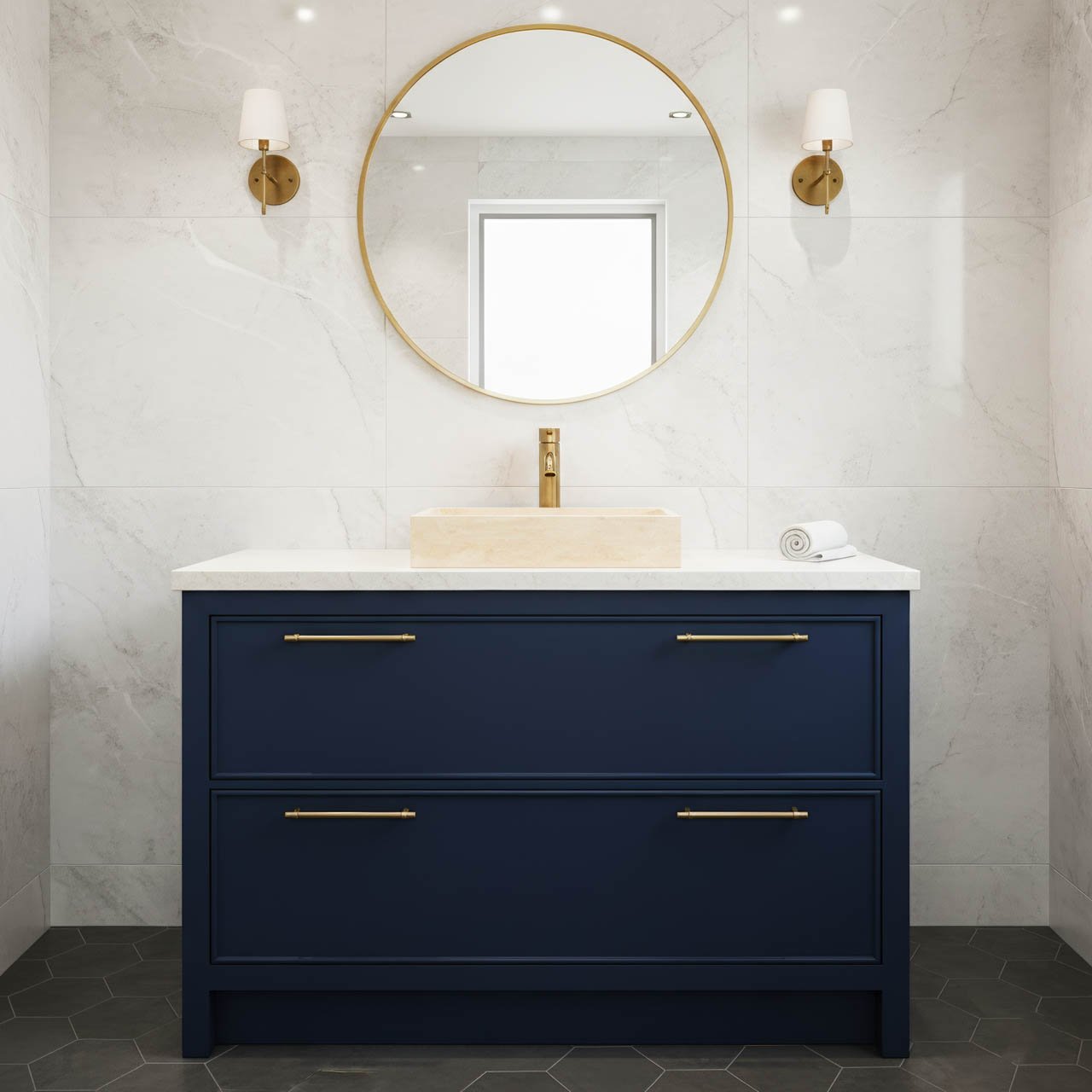 Monolitik Görünüm: Tek bir taş bloktan yontulmuş izlenimi verir ve hafif seramik lavaboların taklit edemeyeceği sağlam, birinci sınıf bir görünüm sağlar.