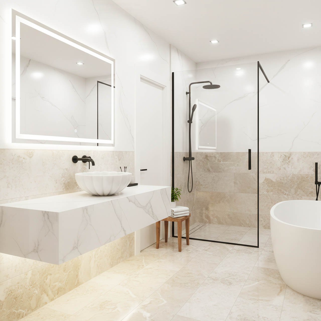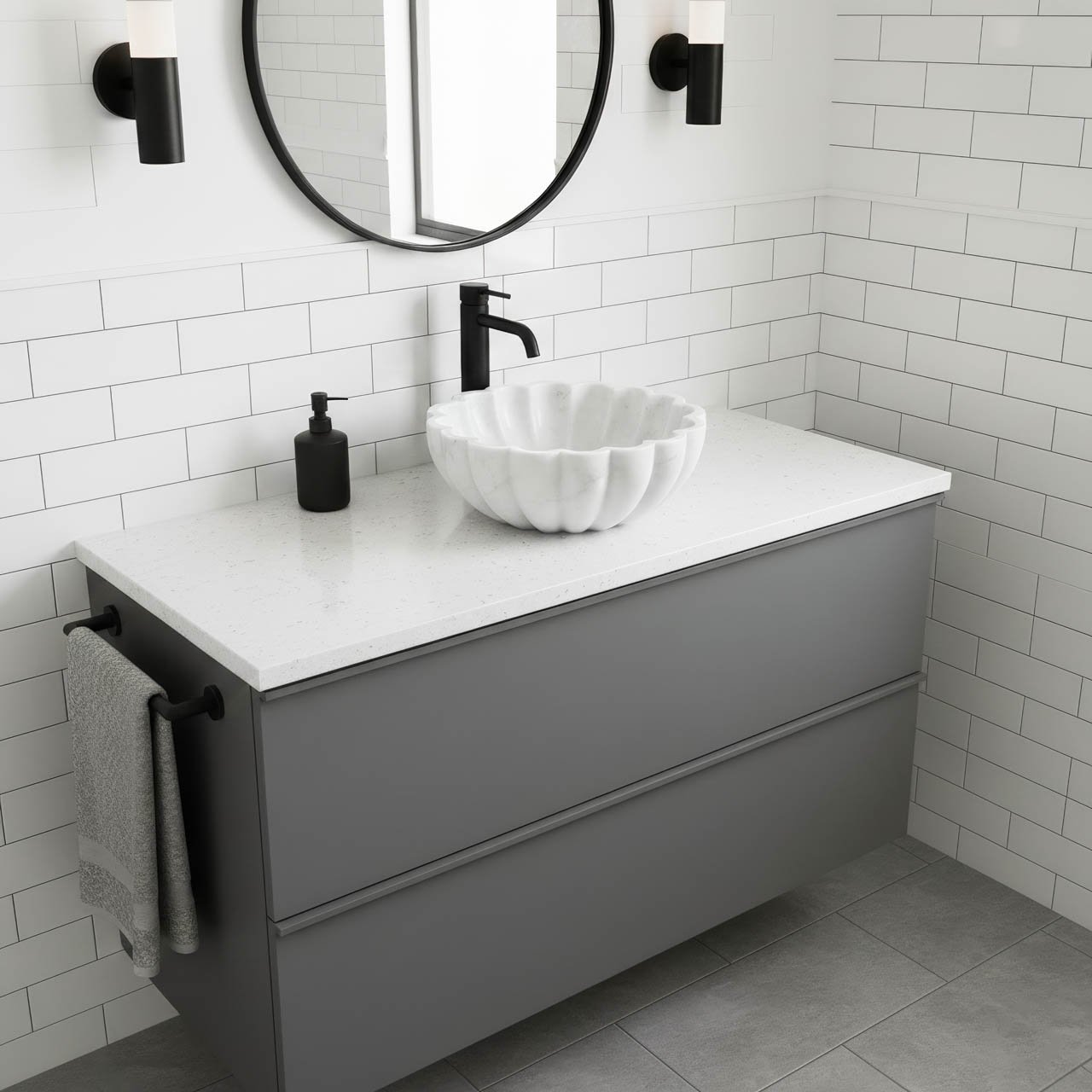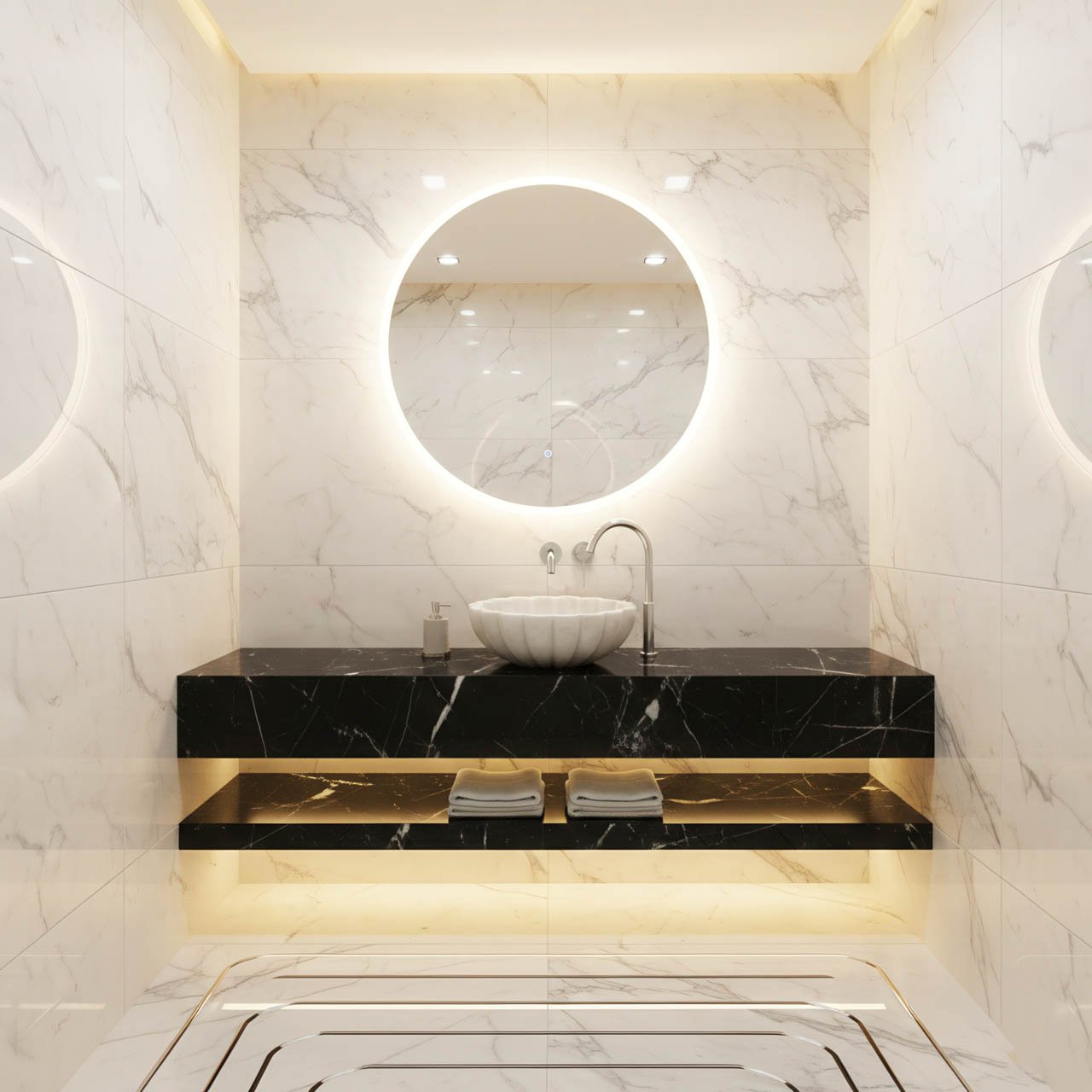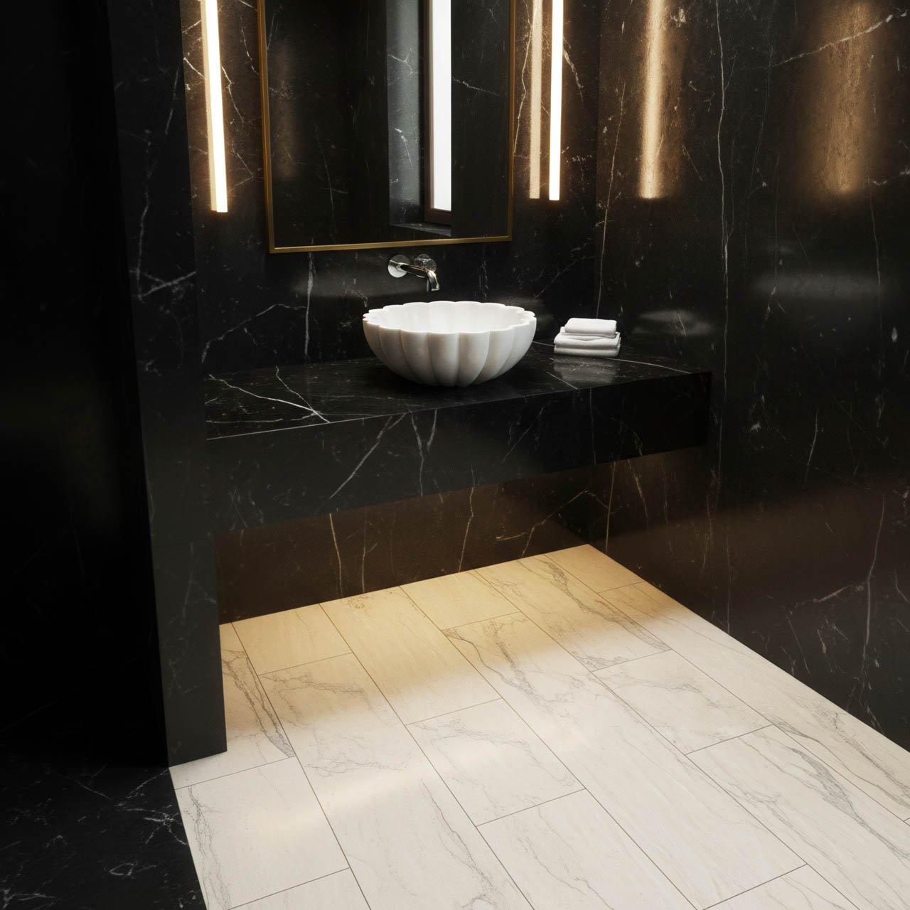 • Estetik: “Denizkabuğu” silüeti, zamansız, neoklasik bir ambiyans kazandırır. Derin dikey olukları (yivler), mermerin doğal parlaklığını vurgulayan dinamik bir ışık ve gölge etkileşimi yaratır.
