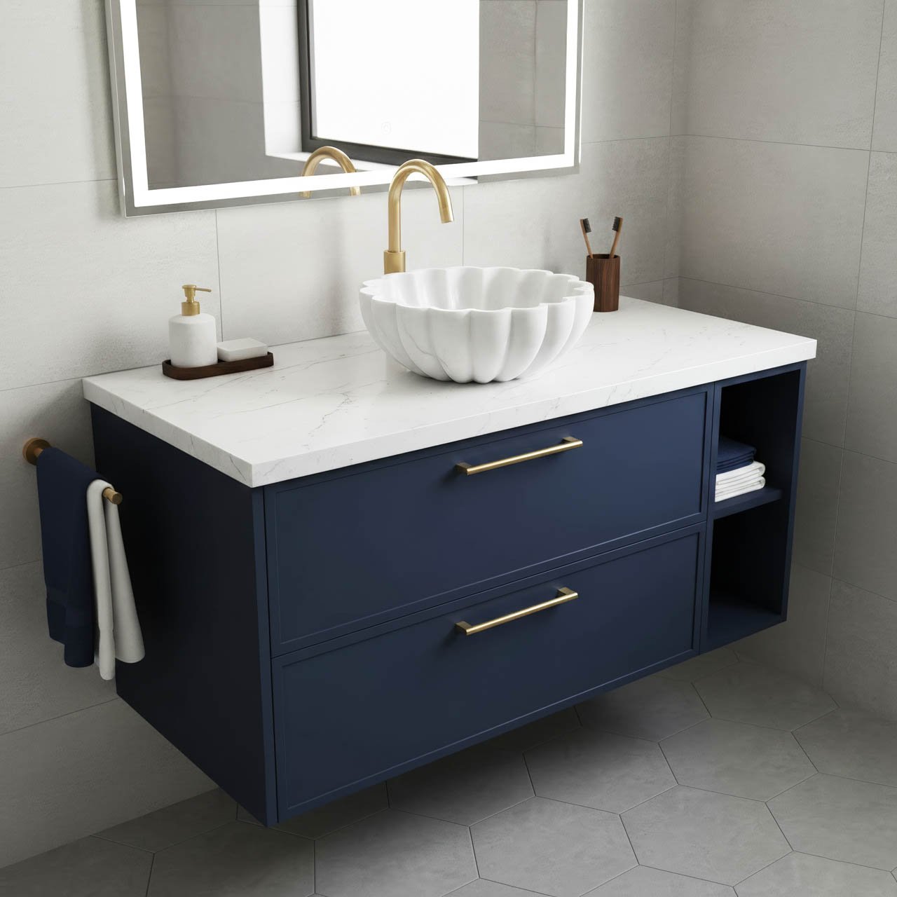 İster büyük ölçekli projeler için Blok ve Kesilmiş Mermer tedariği, ister butik projeler için özel üretim banyo üniteleri... Mimaivit, üretim zincirinin her halkasında kalite ve özgünlüğü garanti eder.