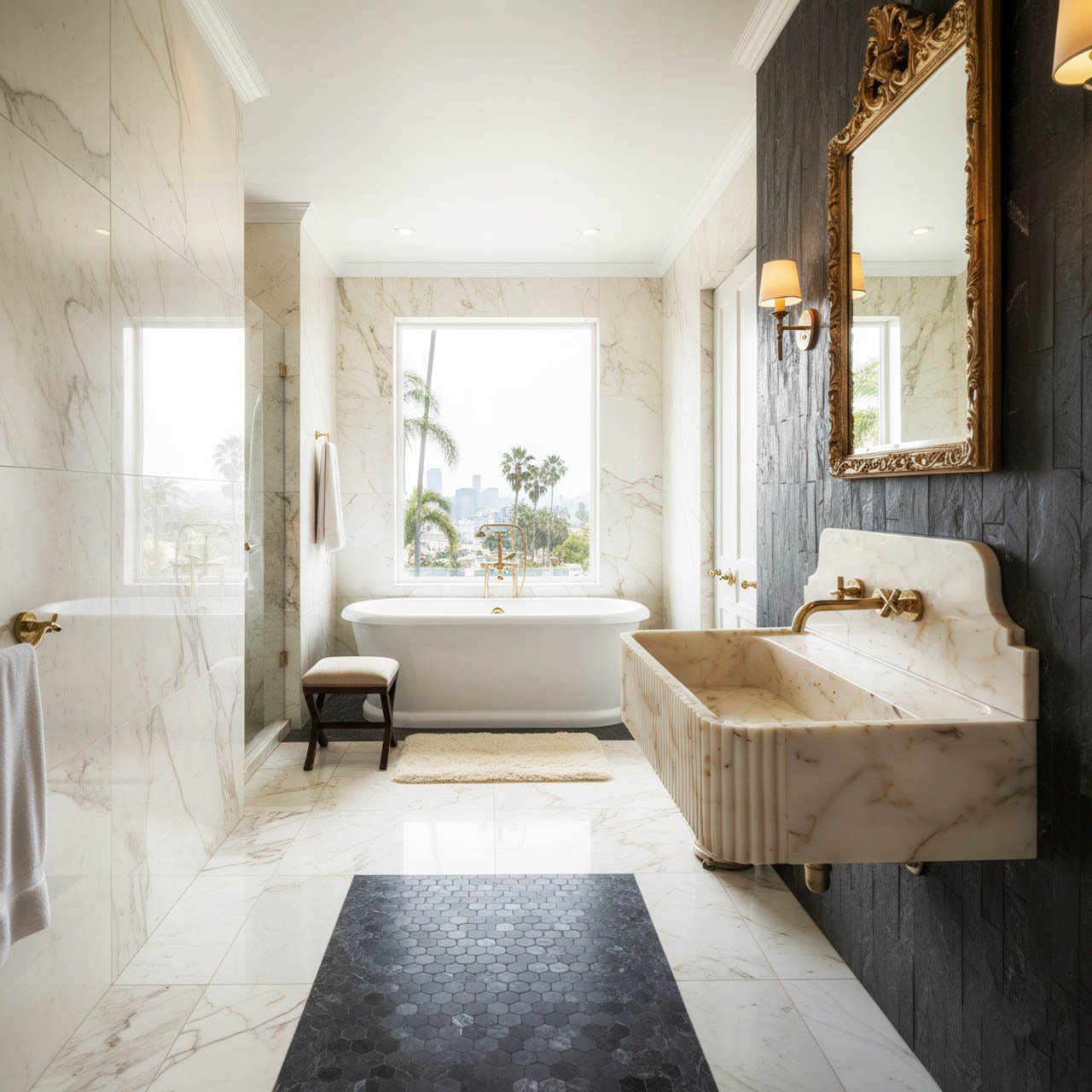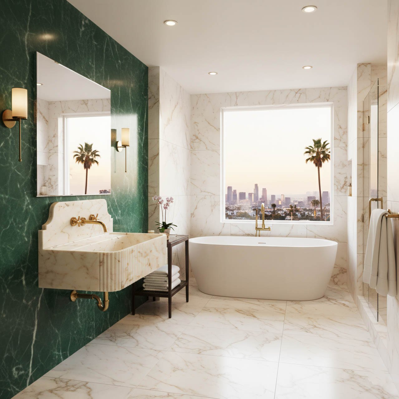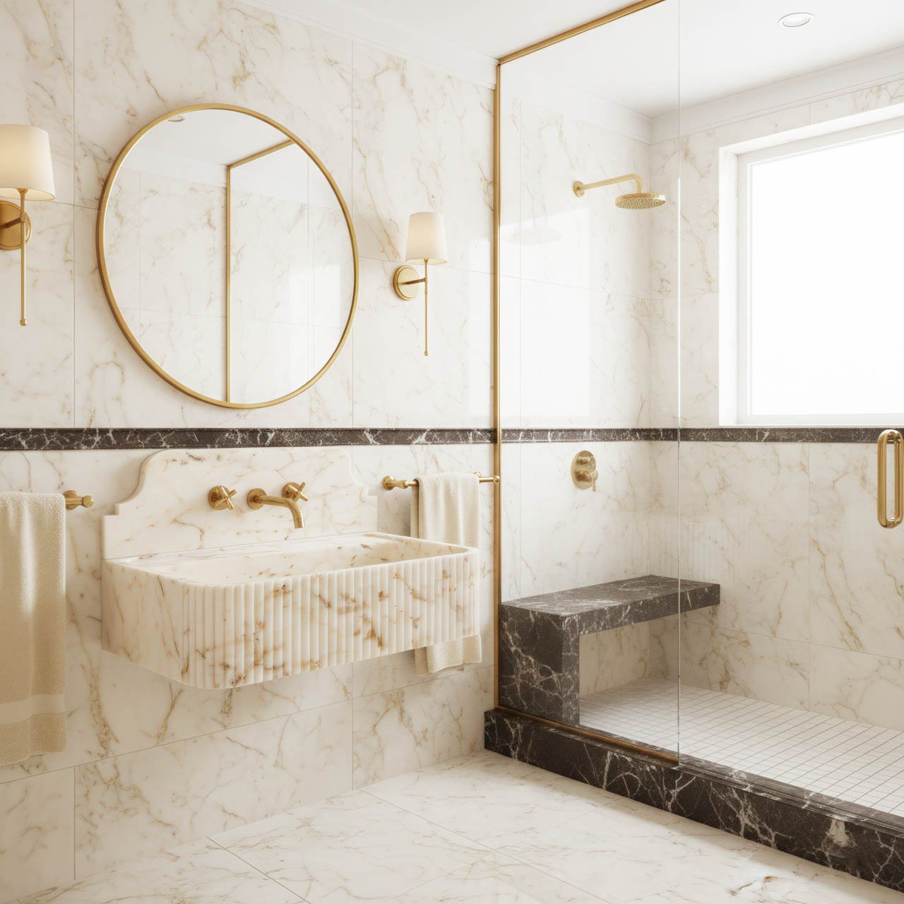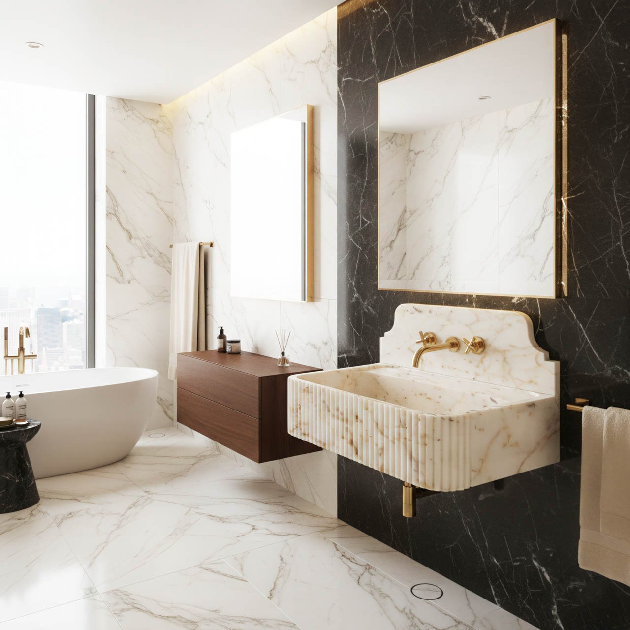 This marble sink is a striking example of luxury stonework, blending classical form with one of the most sought-after marble varieties in contemporary interior design.