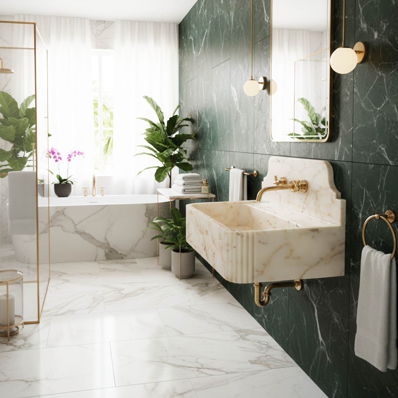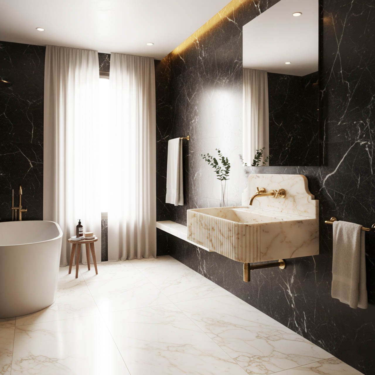 Masif Lavabo ve Küvetler: Tek parça mermerin soğuk dokusunu, sıcak bir sanat eserine dönüştürüyoruz.