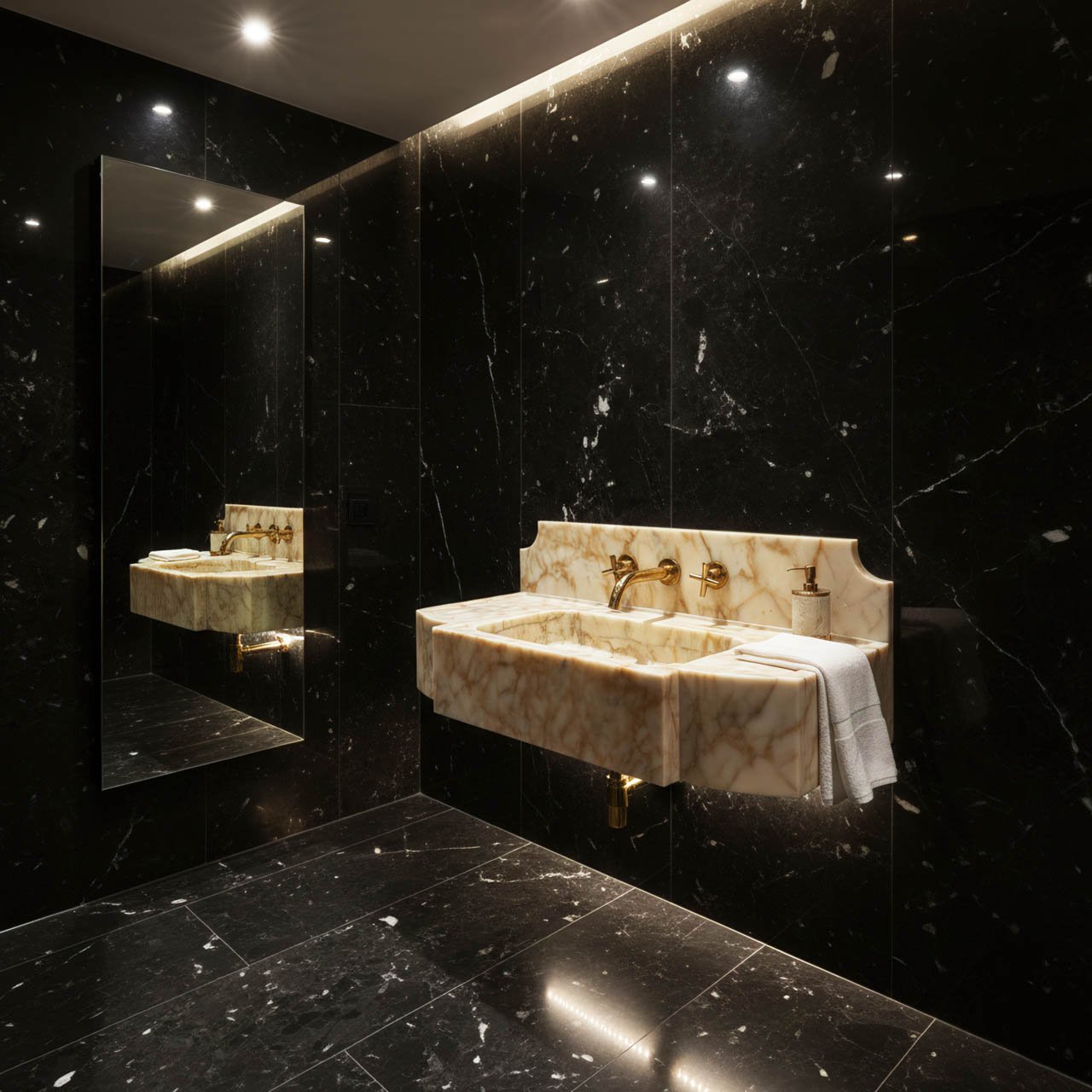 This marble sink is a striking example of luxury stonework, blending classical form with one of the most sought-after marble varieties in contemporary interior design.