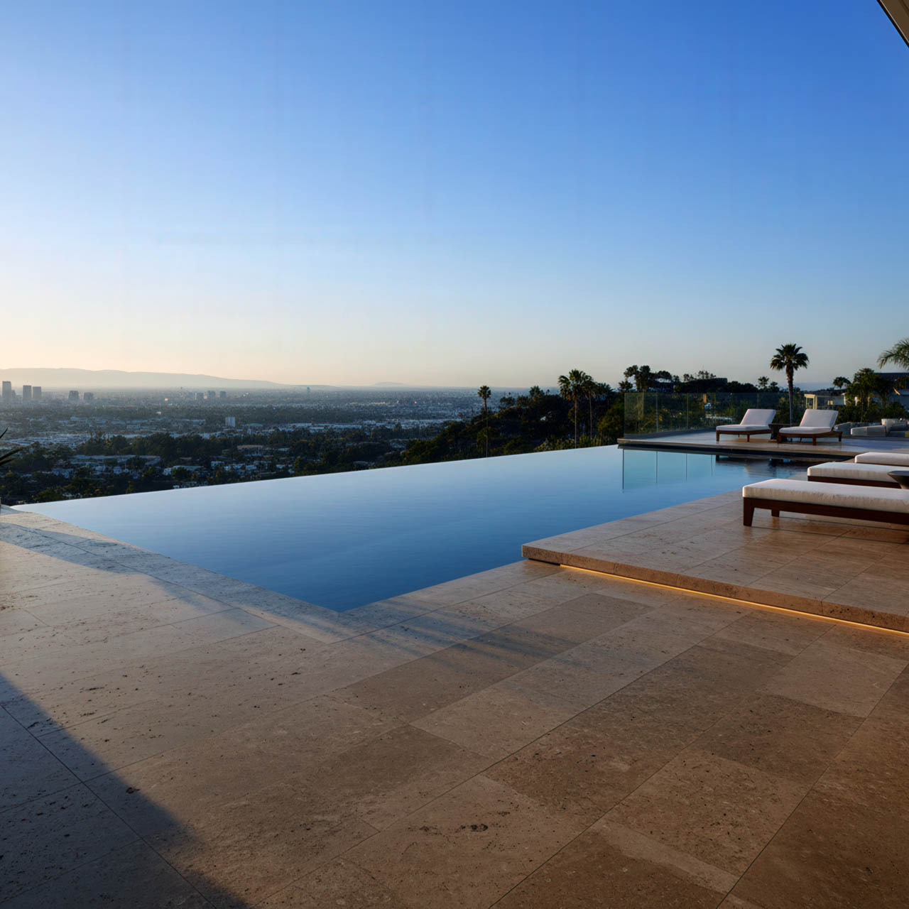 - Exterior: Facade cladding and poolside paving (Tumbled/Unfilled recommended for slip resistance).