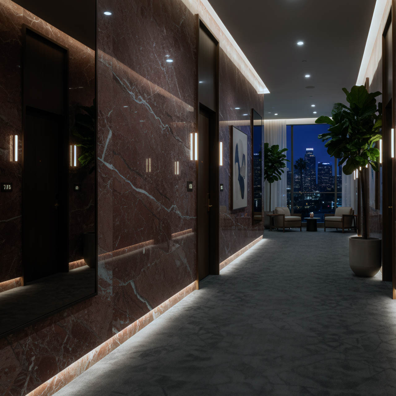 Architect’s Note: By bonding micro-thin marble to lightweight substrates, we achieve the visual impact of solid stone while significantly reducing the structural load on the building.