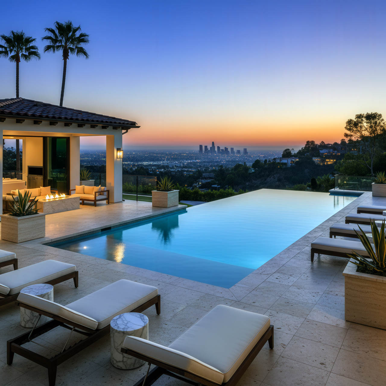 The “Blurred Boundary” trend remains dominant in 2026, where the same material flows from the living room out to the pool deck.