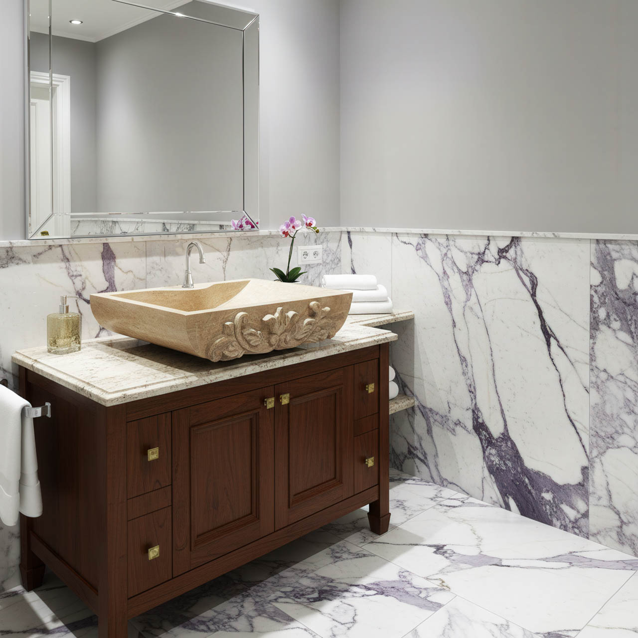Masif Lavabo ve Küvetler: Tek parça mermerin soğuk dokusunu, sıcak bir sanat eserine dönüştürüyoruz.