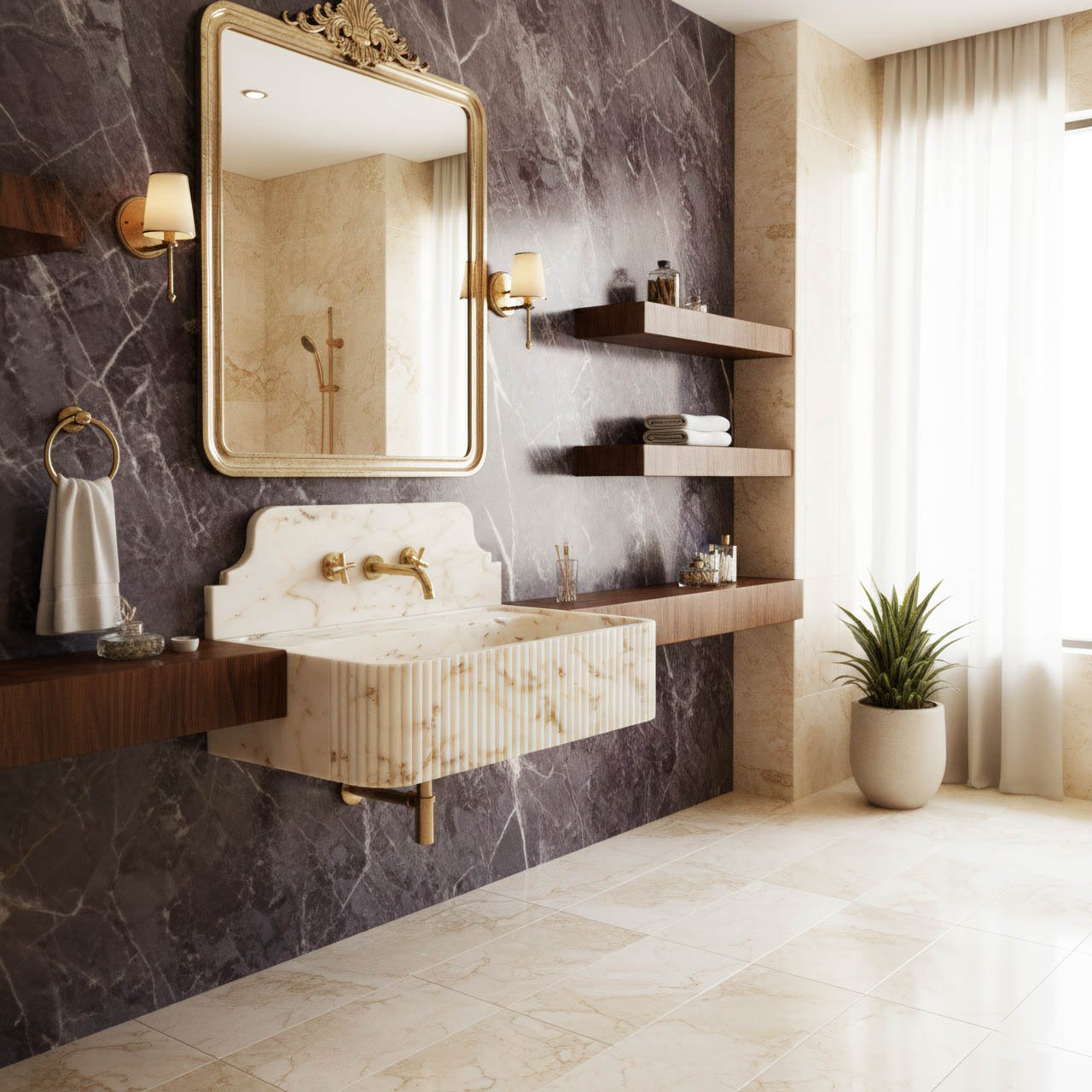 Unlike standard ceramic sinks, this piece is carved from a single block of stone, meaning the vein patterns are continuous and entirely unique to your specific unit. It serves as a “functional sculpture,” making it the ideal centerpiece for a high-end powder room or a primary suite looking for a vintage Mediterranean or Parisian aesthetic.
